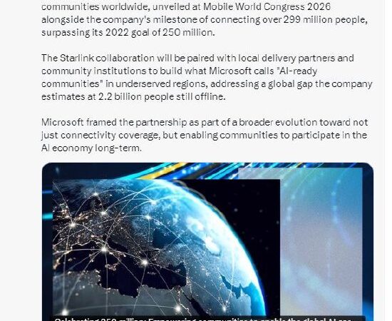 微软宣布全球网络覆盖人数达2.99亿,将与星链合作扩大覆盖范围