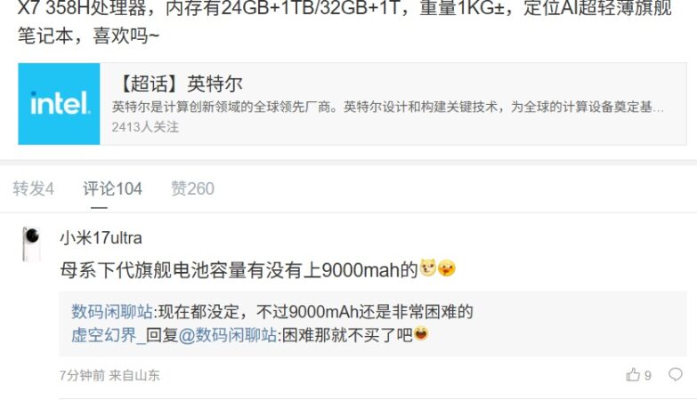 小米 AI 超轻薄旗舰笔记本曝光:Ultra 5 325/Ultra X7 358H 处理器,重量 1kg±