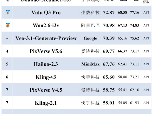 图生视频4月中文测评榜单发布:国产模型包揽前三 反超海外模型