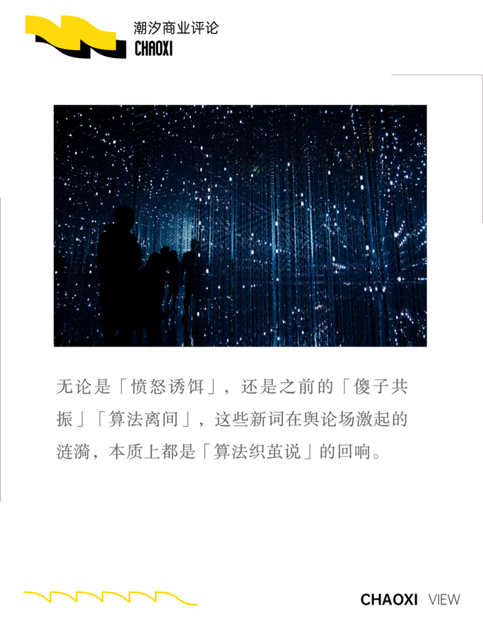 要看到,无论是「愤怒诱饵」,还是之前的「傻子共振」「算法离间」,这些新词在舆论场激起的涟漪,本质上都是「算法织茧说」的回响。