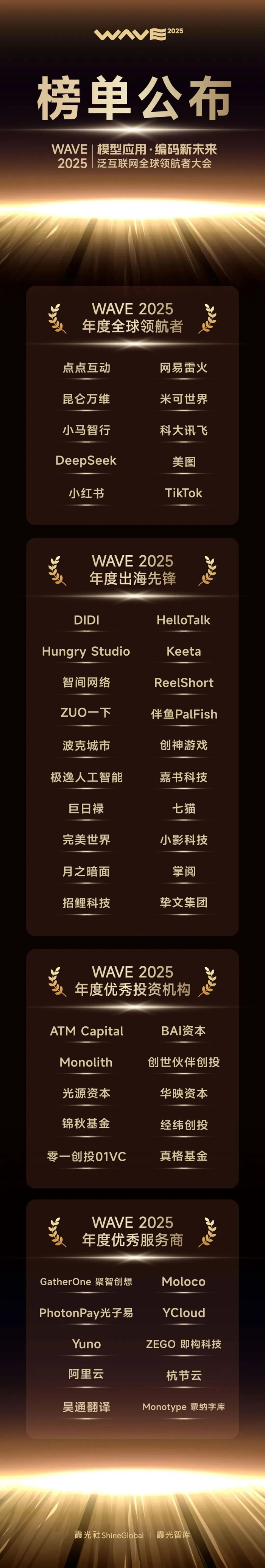 11 月 20 日,霞光社&霞光智库联合阿里云发布 WAVE 2025 泛互联网全球领航者年度榜单,真格基金上榜「WAVE 2025 年度优秀投资机构」。