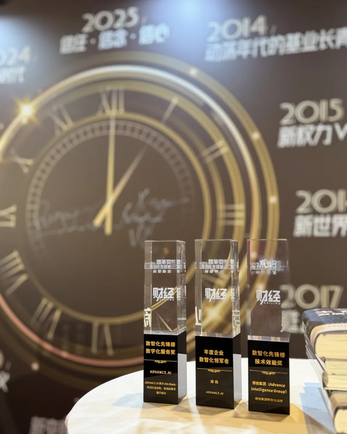 10 月 31 日,第八届「鼎革奖」数智化先锋榜颁奖典礼在北京圆满落幕。凭借在数字身份验证与合规风险管理领域的卓越实践、对全球产业数智化转型的深度赋能,以及清晰的战略引领力,ADVANCE.AI 荣获「数智化先锋榜数字化服务奖」。与此同时,领创集团联合创始人、ADVANCE.AI 董事长寿栋获评「年度企业数智化领军者」。ADVANCE.AI 所属的领创集团(Advance Intelligence Group)亦凭借生成式人工智能(GenAI)在全链路落地中的卓越成果,斩获「数智化先锋榜技术效能奖」。三大奖项集中展示了集团与 ADVANCE.AI 在技术创新、场景实践与战略领导力上的全方位竞争力。阅读更多