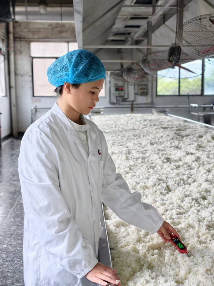 入职后,她从工艺员做起,凭借在茅台学院学到的微生物知识和工艺优化能力,主导开展菌种筛选与工艺优化项目,致力于提升米香型白酒的总酸总酯指标。短短三年间,她一路成长为车间主任、酒体设计主管,成为公司最年轻的核心技术人才。
