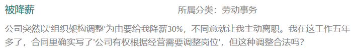 公司突然以“组织架构调整”为由要给我降薪30%,不同意就让我主动离职。我在这里工作五年多了,合同里确实写了“公司有权根据经营需要调整岗位”,但这种调整合法吗?