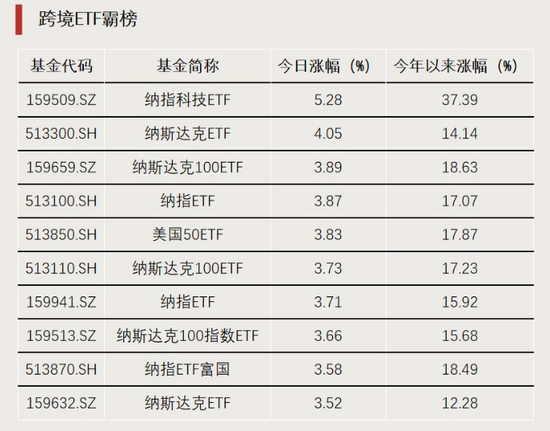 跨境ETF霸屏涨幅榜前十