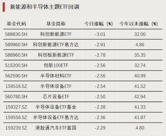 科创板新能源、半导体相关ETF跌幅居前。