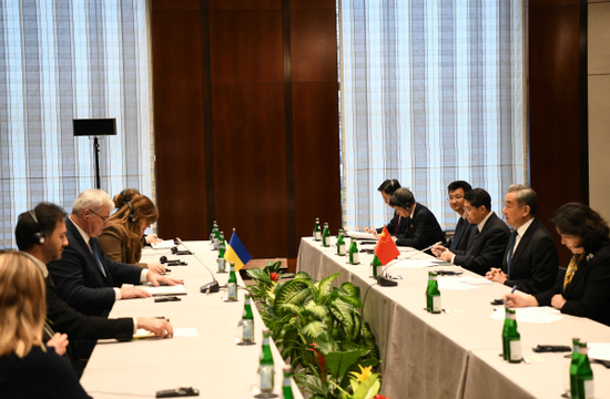 2月13日,在慕尼黑,两国外长会面。图片显示,乌克兰外长瑟比加握着王毅的手,满脸是笑。