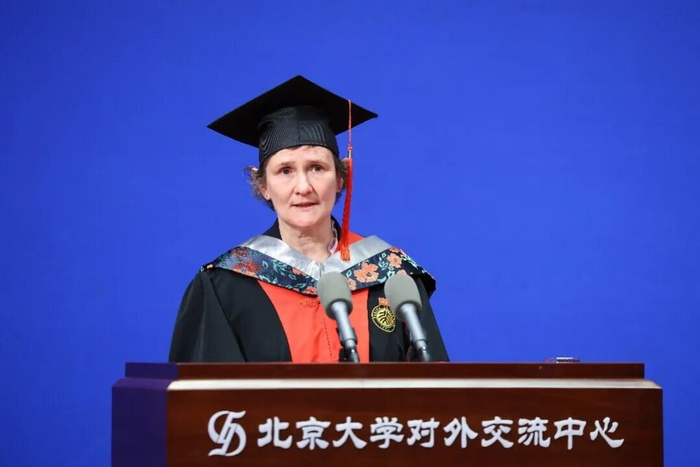 北京大学11月29日消息,11月27日,英国牛津大学校长艾琳·特雷西(Irene Tracey)率代表团访问北京大学,被授予北大名誉博士学位并发表主旨演讲。