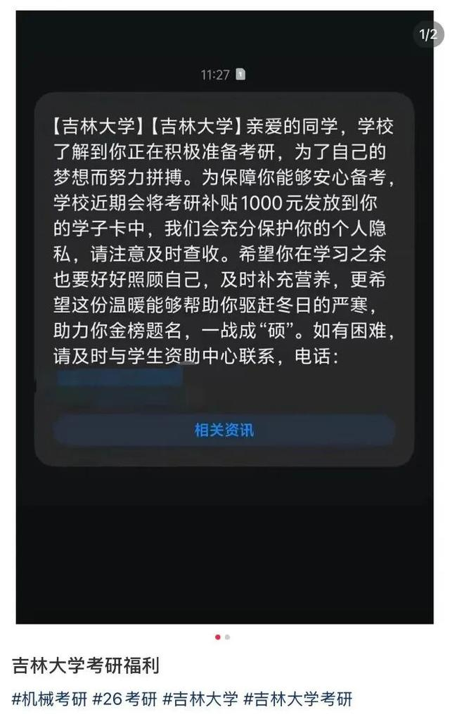 为减轻同学们备考期间的经济压力,吉林大学通过大数据精准识别,为经济关注对象考研学子发放专项补贴,无需申请、无需材料,在完全保护隐私的前提下,这份心意已悄悄汇入学子的账户。